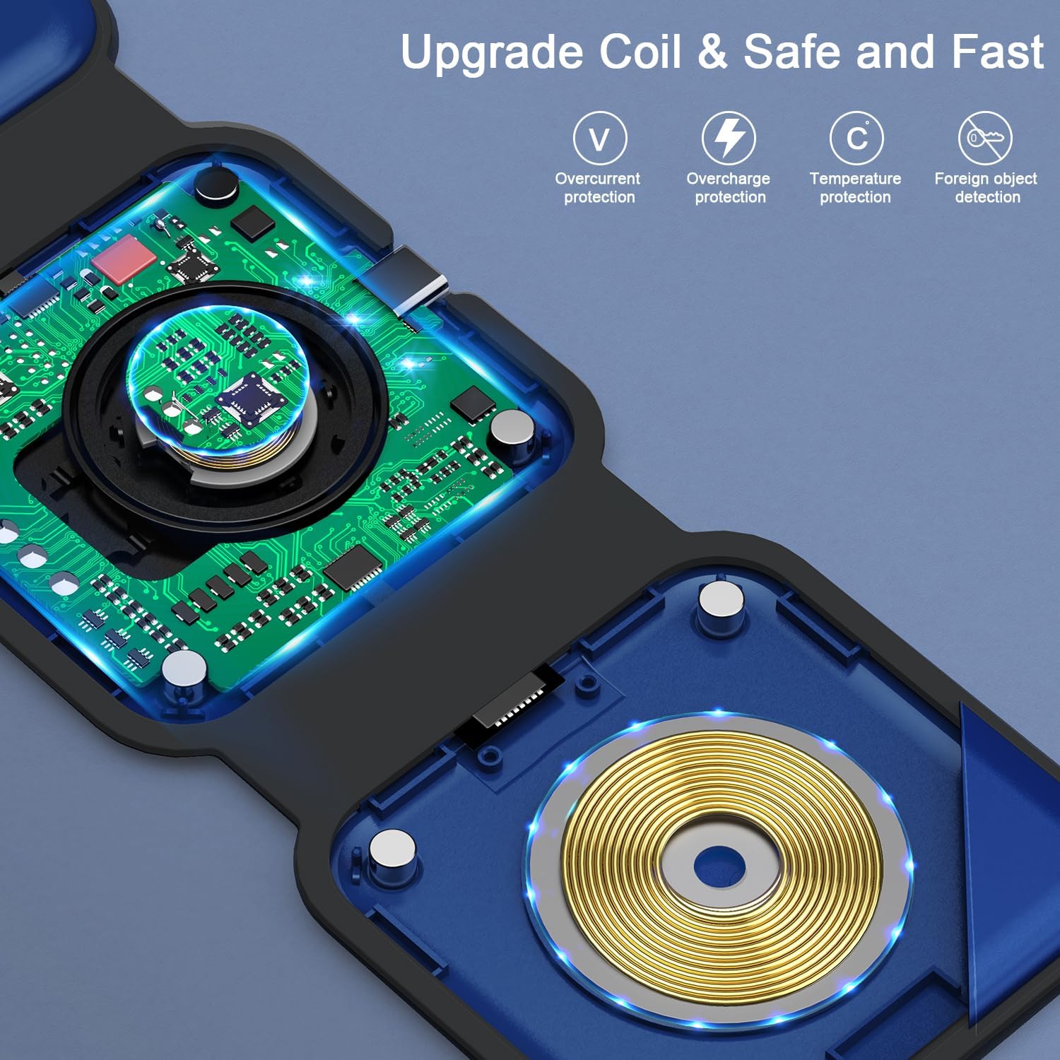 RTOPS Wireless Charger 3-in-1 Magnetic Travel Charging Station with GaN Adapter - Deep Blue