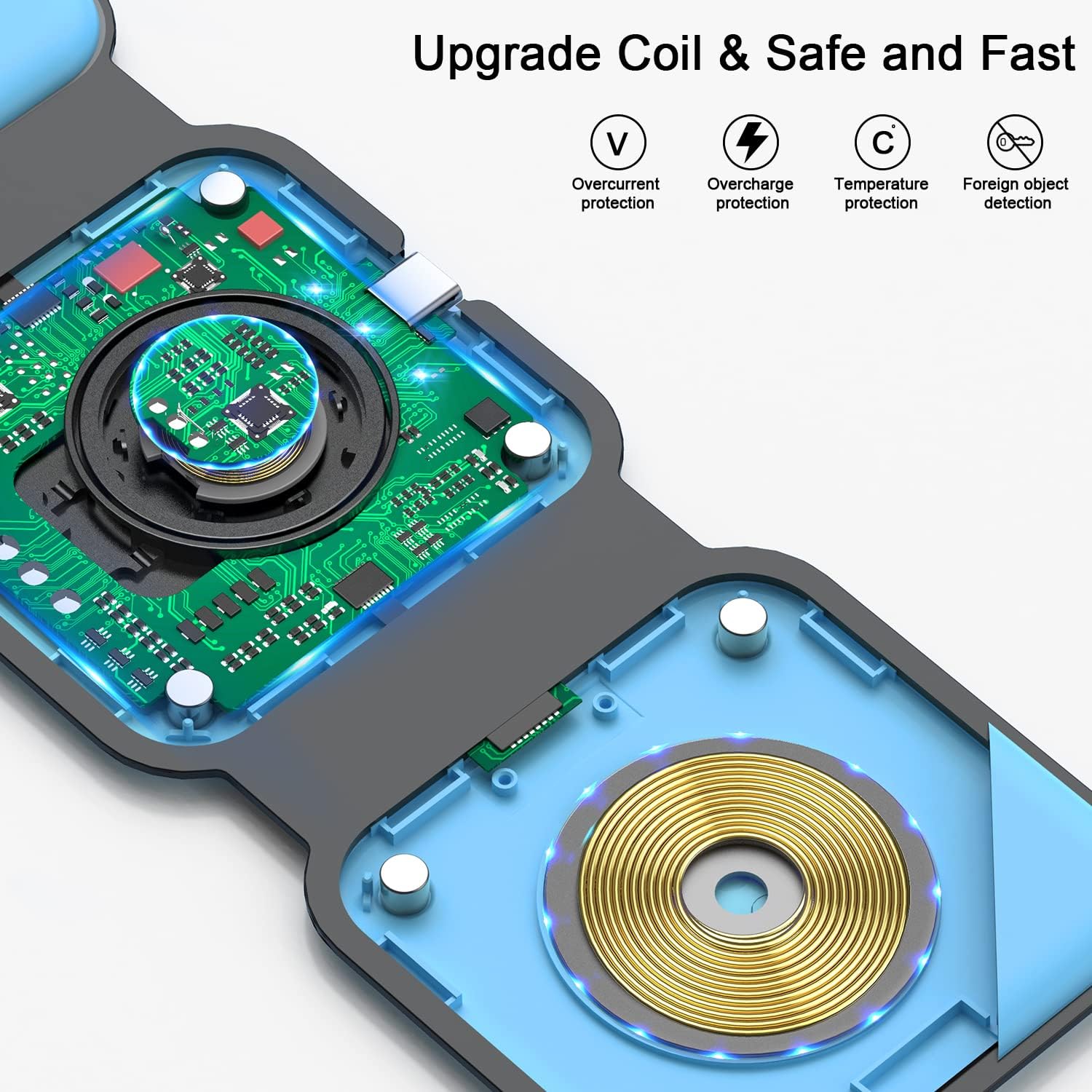 RTOPS Wireless Charger 3-in-1 Magnetic Travel Charging Station with GaN Adapter - Ice Blue
